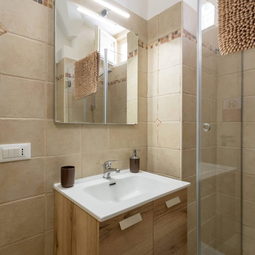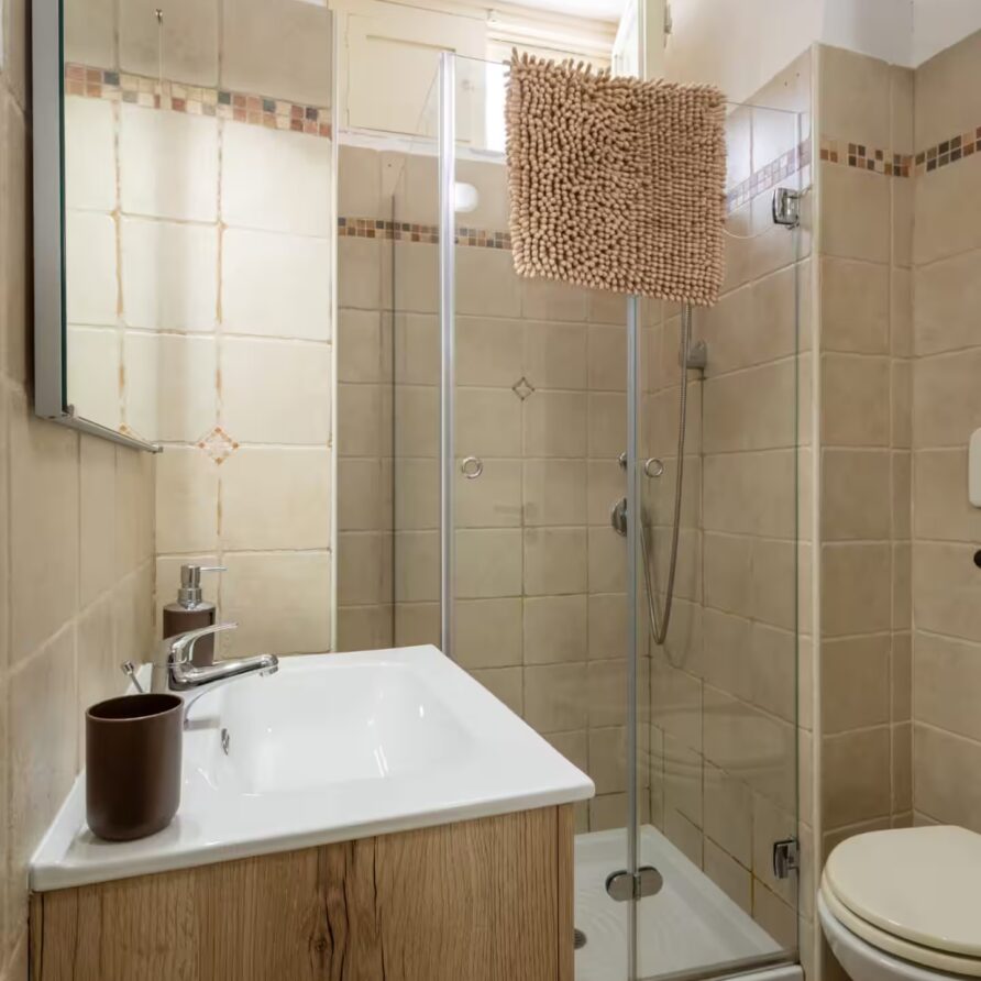 im April 2023 wurde die Wohnung mit Dusche mit Glastüren, Glastüre und Einbauschränken weiter restauriert.